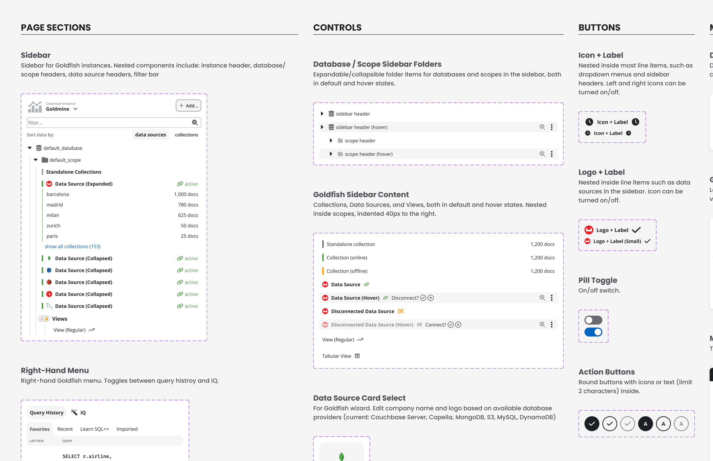 I designed unique form fields for each of the six supported database platforms from which users could ingest data into Columnar: Couchbase Server, Couchbase Capella, Amazon S3, Amazon DynamoDB, MongoDB, and MySQL. I regularly consulted with engineering leaders on our core development team to ensure that all the forms contained accurate credentials for each of the above platforms. I also worked extensively with the design team to prototype an interactive sidebar to navigate data.